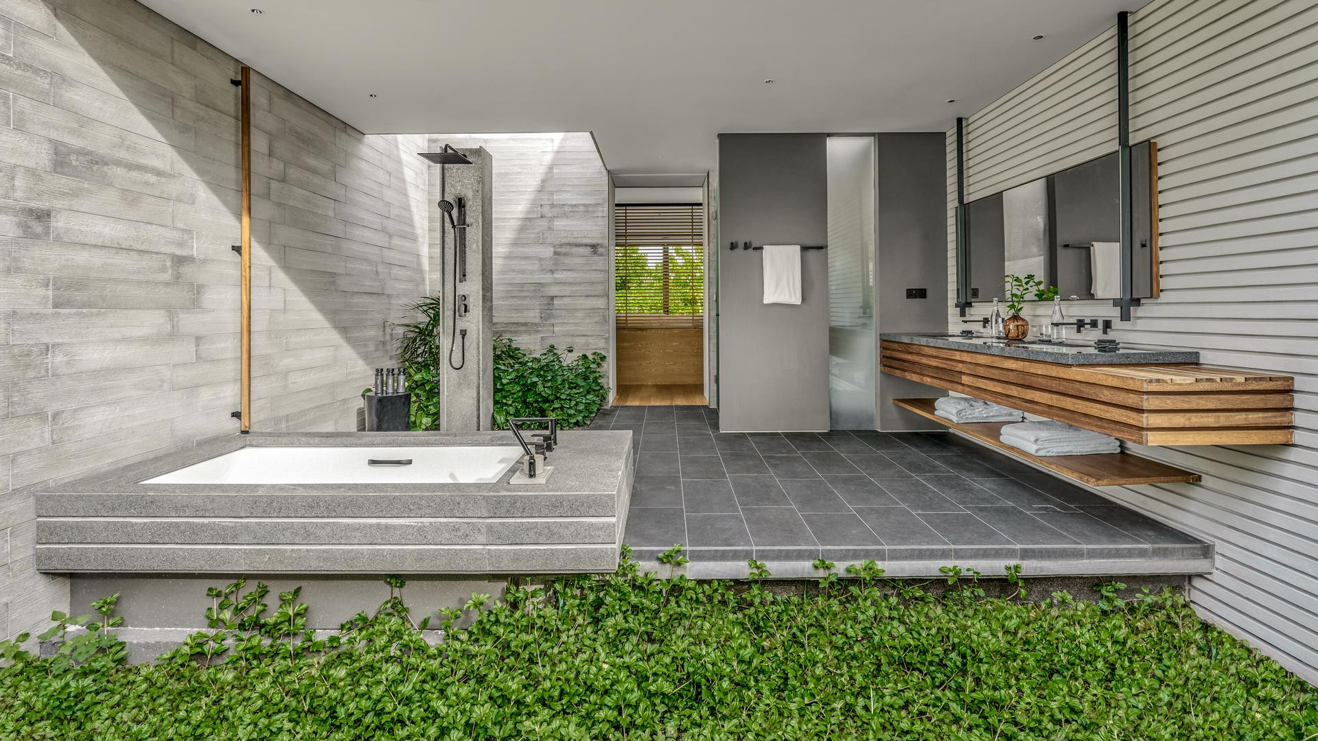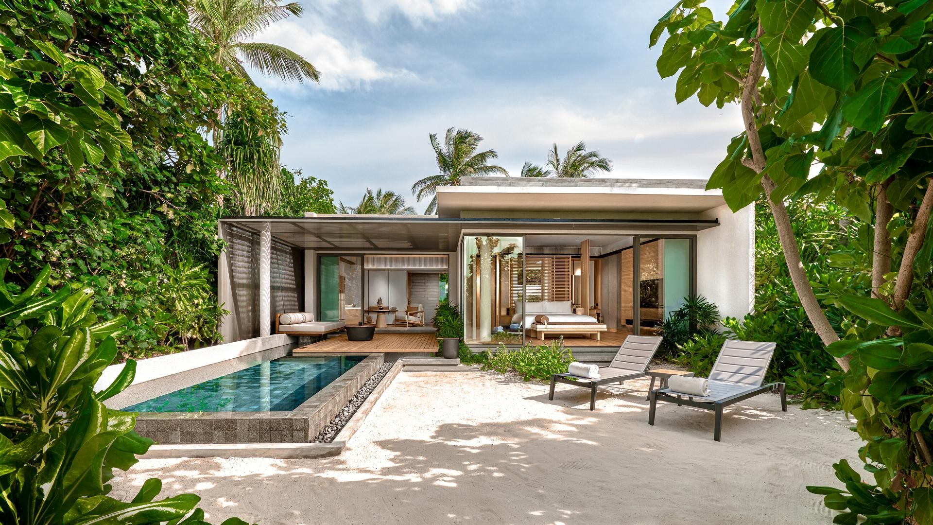 Közvetlenül a tengerparton található Beach Pool Villa (27) kb. 202 nm-es, külön nappalival és hálószobával, további szabadtéri zuhanyzóval.