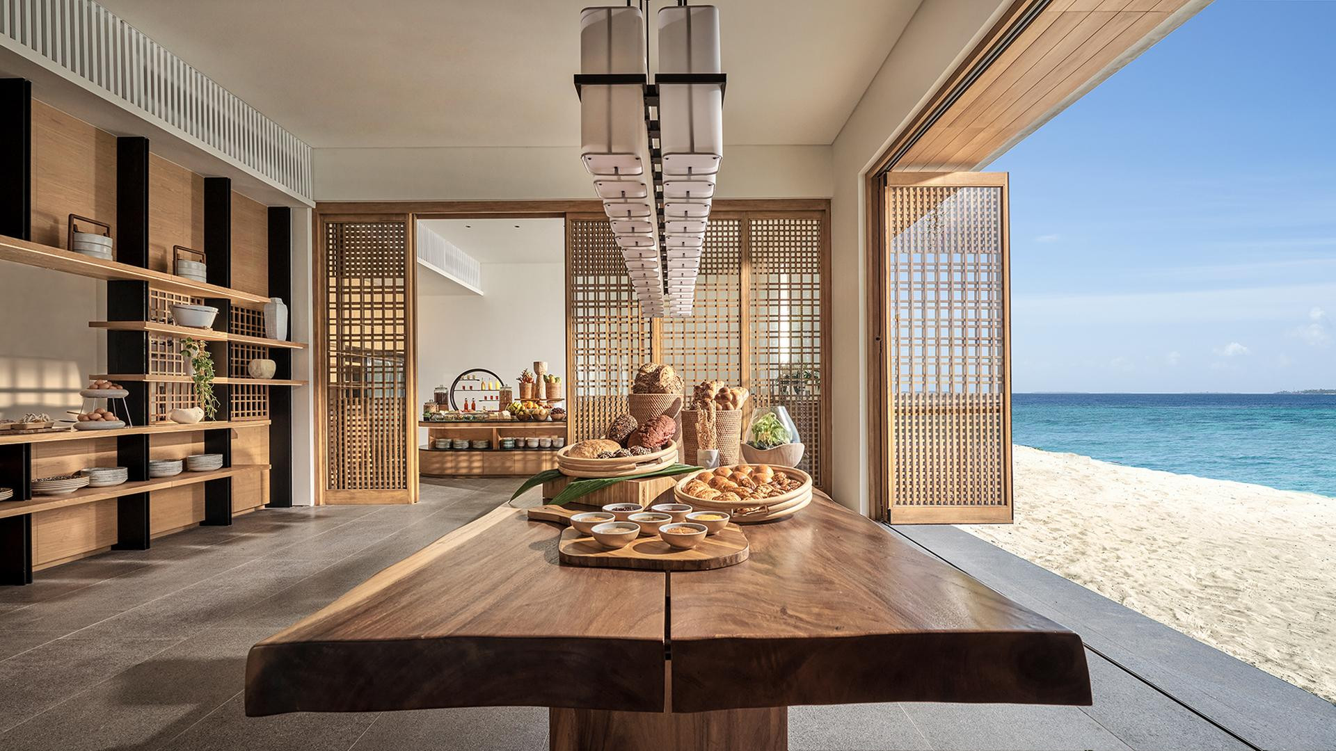 A fő étterem, a Seasalt ízletes szigeti ételeket kínál közel-keleti és mediterrán hatásokkal. Különleges élmény várja a vendégeket a The Shack , a szálloda privát homokpadja. Az Umami modern japán ihletésű ételeket kínál . A tengerparti Mirus bár változatos és bőséges italmenüt, valamint könnyű harapnivalókat kínál. A strandon , a Pibati kávézóban a vendégek gyors harapnivalókat és hideg italokat fogyaszthatnak. A Yakitori bár remek hely a nap befejezésére egy ázsiai ihletésű koktéllal.