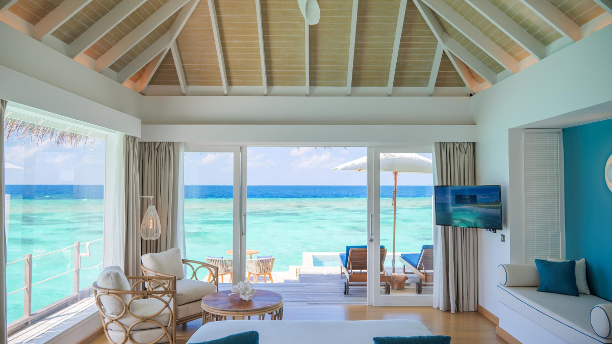Water Villa Sunset: kb.105 nm külterülettel együtt: Cölöpökre épült közvetlenül a lagúna felett, napozóterasszal és közvetlen hozzáféréssel az óceánhoz.