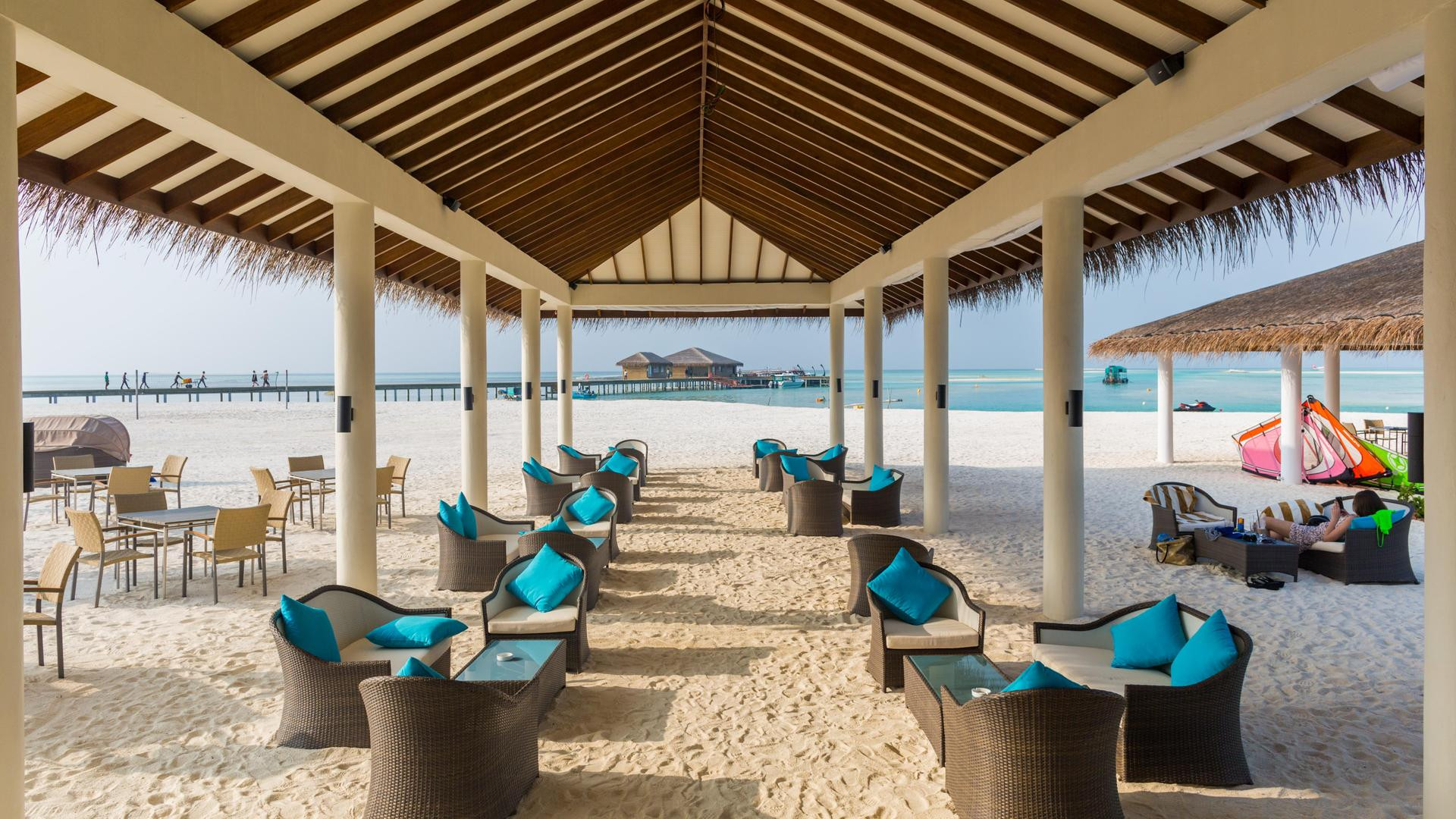 A szigetnek saját reefje nincs, tehát merülőknek az ingyenes közeli reefhez szervezett hajókirándulás ajánlott, vagy még jobban a fizetős távolabbi valóban minőségibb merülési lehetőségekre szervezett hajós kirándulások. Legszebb partja a vízre épült villa suite előtti naplemente oldalon van, ahol egy kis homokpad is található kristálytiszta vízzel, fehér homokos lassan mélyülő parttal. A vízre épült villák teraszán nincs napernyő vagy árnyékoló csak egy kis tetős rész. A sima parti iker villák előtti partszakasz lassan mélyülő, de nagyon korallos, néhol így gumi fürdő cipő viselése ajánlatos. Apálykor ez nem úszható, de így jól be lehet menni. Néhol tengeri fű és korallosabb rész is található. A naplemente oldali parti külön álló közel 5 csillagos minőségű suitek előtti part kissé gyorsabban mélyül néhol, valamint nagyobb hullámok is lehetnek bizonyos időszakokban. A sziget szinte teljes észak- keleti részén a főétteremhez közeli sima iker parti villák, valamint a naplemente oldali suiteknál is elégé hallható a központi generátor zaja majdnem egészen a sziget közepén lévő SPA- ig bezáróan. Igaz ez zárt légkondicionált lakóhelyiségekben nem zavaró. A vízre épült előkelő MANTA étterem kiváló Á la Carte, külön fizetős. A sziget naplemente oldali dél- nyugati végén lévő KURUM bár nagyon hangulatos. Itt azonban legjobban viszi az emelkedő óceán szintje a partot, ezért itt mesterségesen homokzsákokkal is kell védekezni. A naplemente oldalai Palm square étterem is nagyon hangulatos nyitott, a pálmafák árnyékában lévő Á la carte. A közeli csodás homokpadok, a naplemente halászat és delfinles, valamint a közeli lakott sziget kirándulás is sok felejthetetlen élményt nyújt. + 1 órával előbbre van az óra mint Maléban, a jobb nappali időszak kihasználása miatt.