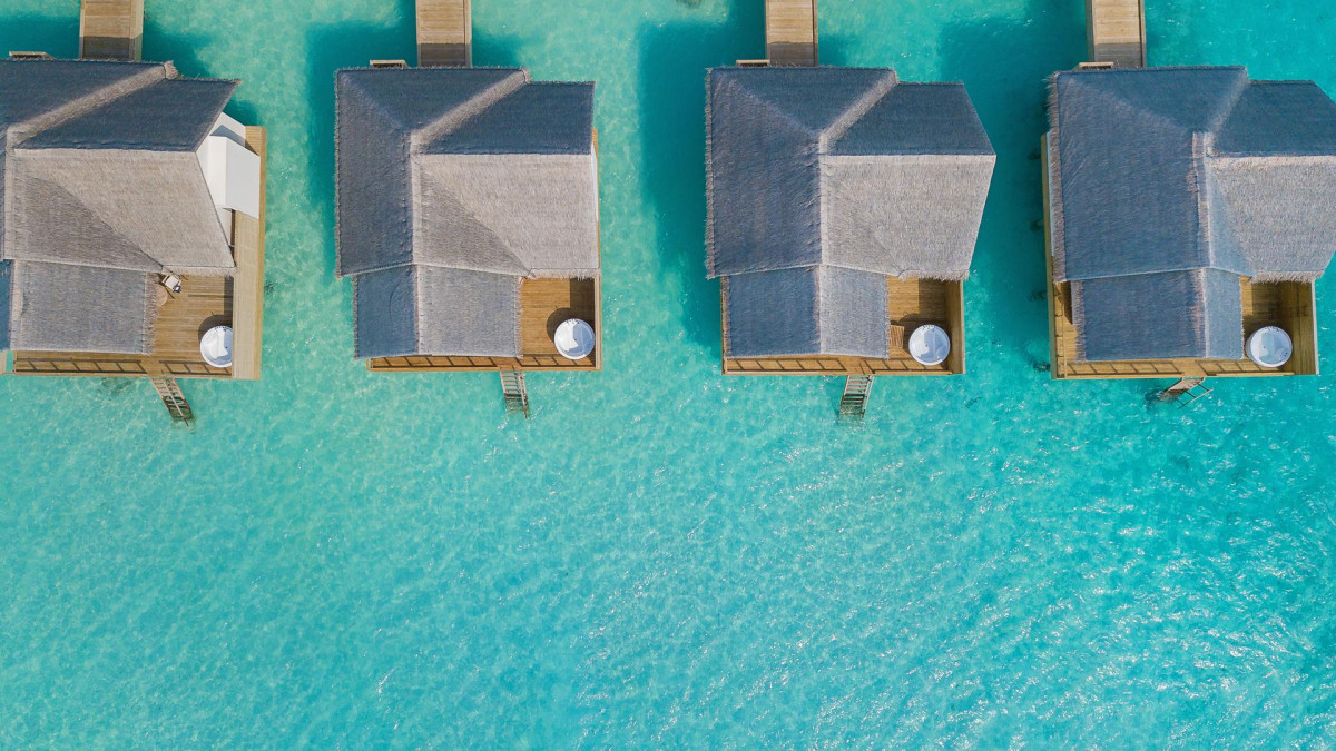 Jacuzzi vízi villa 91-100 nm, villa, különálló, vízi bungaló (cölöpökön a lagúna felett), kilátással a tengerre, fürdőkád, pezsgőfürdő, esőzuhany, WC, fürdőköpeny, hajszárító, fapadló, klíma, ventilátor, minibár térítés ellenében, széf, vasaló, TV, WiFi, vízforraló, kávé/tea, napozóterasz (bútorozva), közvetlen tengeri kijárat