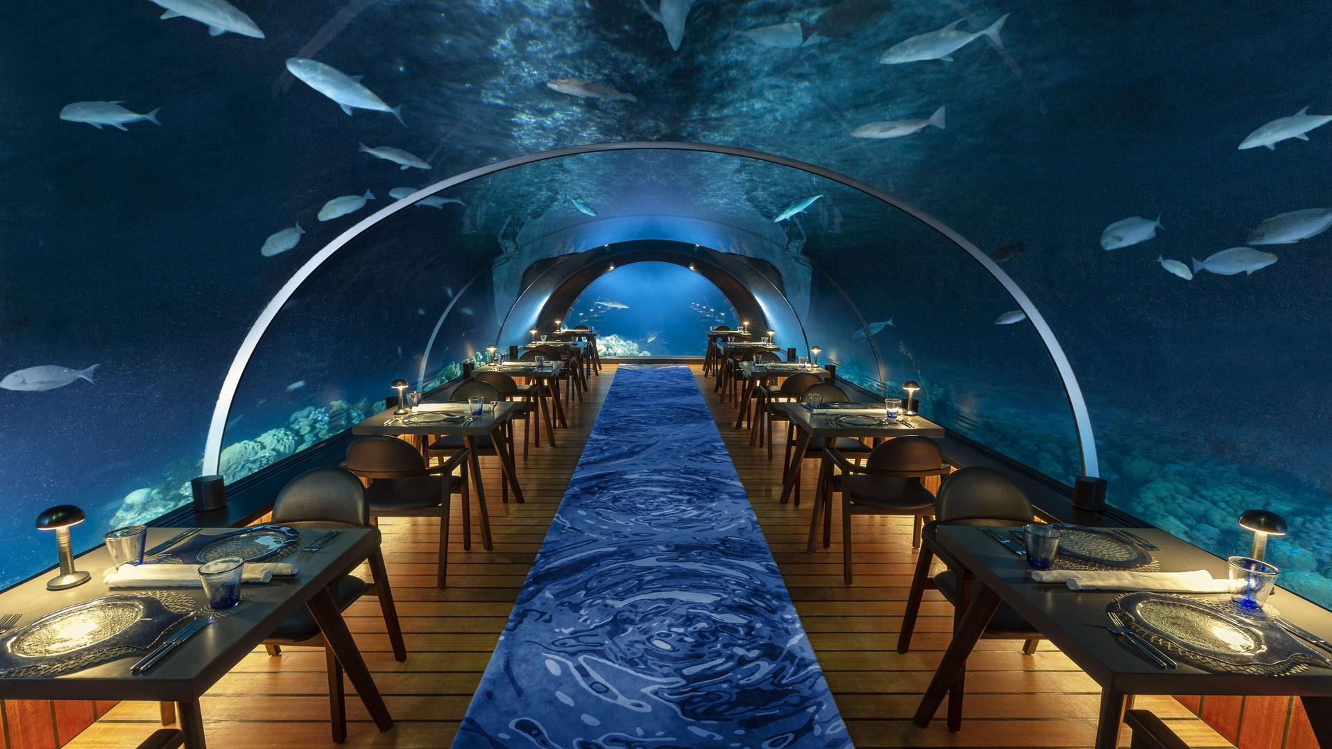 A fényűző üdülőhely egy gyönyörű lagúnával és egy fantasztikus házzátonyával nyűgöz le. Ha szeretnél egy cápa szemébe nézni anélkül, hogy vizes lennél: a víz alatti étterem nemcsak ínyenc fogásokat, hanem lenyűgöző kilátást is kínál!