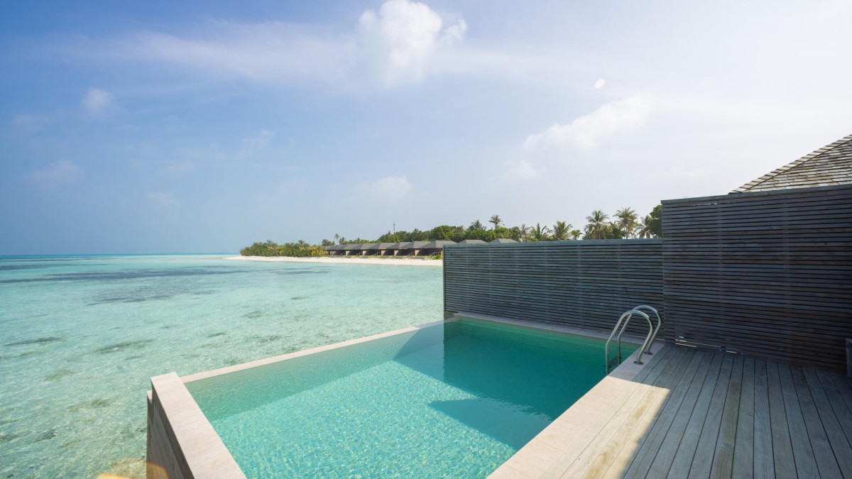 Dheru Water Pool Villa, villa, alsó korhatár: 12 év, tenger felőli oldal, lagúna felőli, tengerre néző, lagúnára néző, kb. 107 m², utolsó teljes felújítás 2023, teljes szobaszám ebben a szobatípusban: 1, elrendezés a következő: kombinált nappali/hálószoba, 1 king-size ágy, járólap, 1 db járólap, 1 db járólap, 1 db járólap, 1 db ingyenes, hideg fekhely, légkondicionálás: mennyezeti ventilátor, pihenősarok, kanapé, vasaló, vasalódeszka, Nespresso gép, kávé/teafőző, vízforraló, minibár: üdítő, víz, alkoholos italok, harapnivalók, minibár töltés, telefon, Internet: WLAN/WiFi, TV: síkképernyős, a hálószobában, szobaszerviz, takarítás, zuhany, esőzuhany, WC, hajszárító, medencével, deszkával, kozmetikai tükörrel