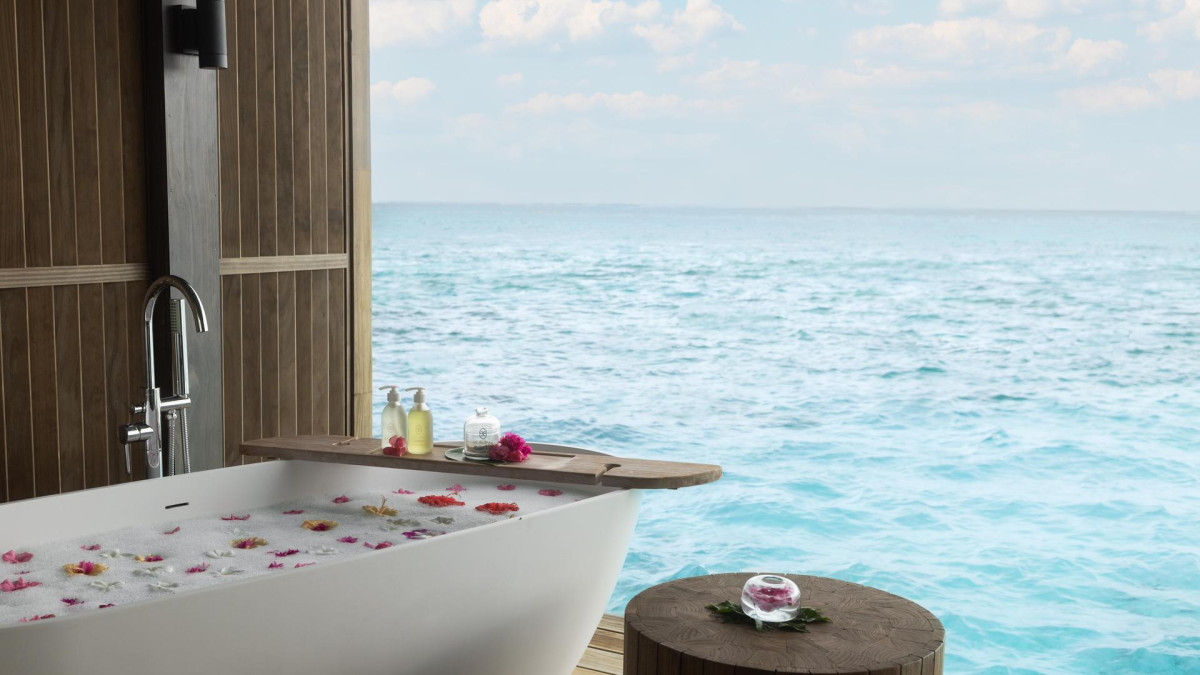 Mabin Water Pool Villa, villa, tenger felőli, tengerre néző, kb. 107 m², utolsó teljes felújítás 2023-ban, összesen szoba ebben a szobatípusban: 1, elrendezése: 1 hálószoba, 1 king-size ágy, 1 kanapé, 1 pótágy, kiságy, légkondi: ingyenes, központilag vezérelhető, vasalás, járólapos, járólapos, járólapos, járólapos, járólapos, járólapos, járólapos, plafon, térítésmentes, kanapé, padló: asztal, Nespresso gép, kávé/teafőző, vízforraló, minibár: üdítők, víz, alkoholos italok, rágcsálnivalók, minibár feltöltése, telefon, Internet: WLAN/WiFi, TV: síkképernyős, a hálószobában, szobaszerviz, takarítás, zuhanyzó, esőzuhany, WC, hajszárító, terasz: nyugágyakkal, saját medencével, nyugágyakkal, nyugágyakkal