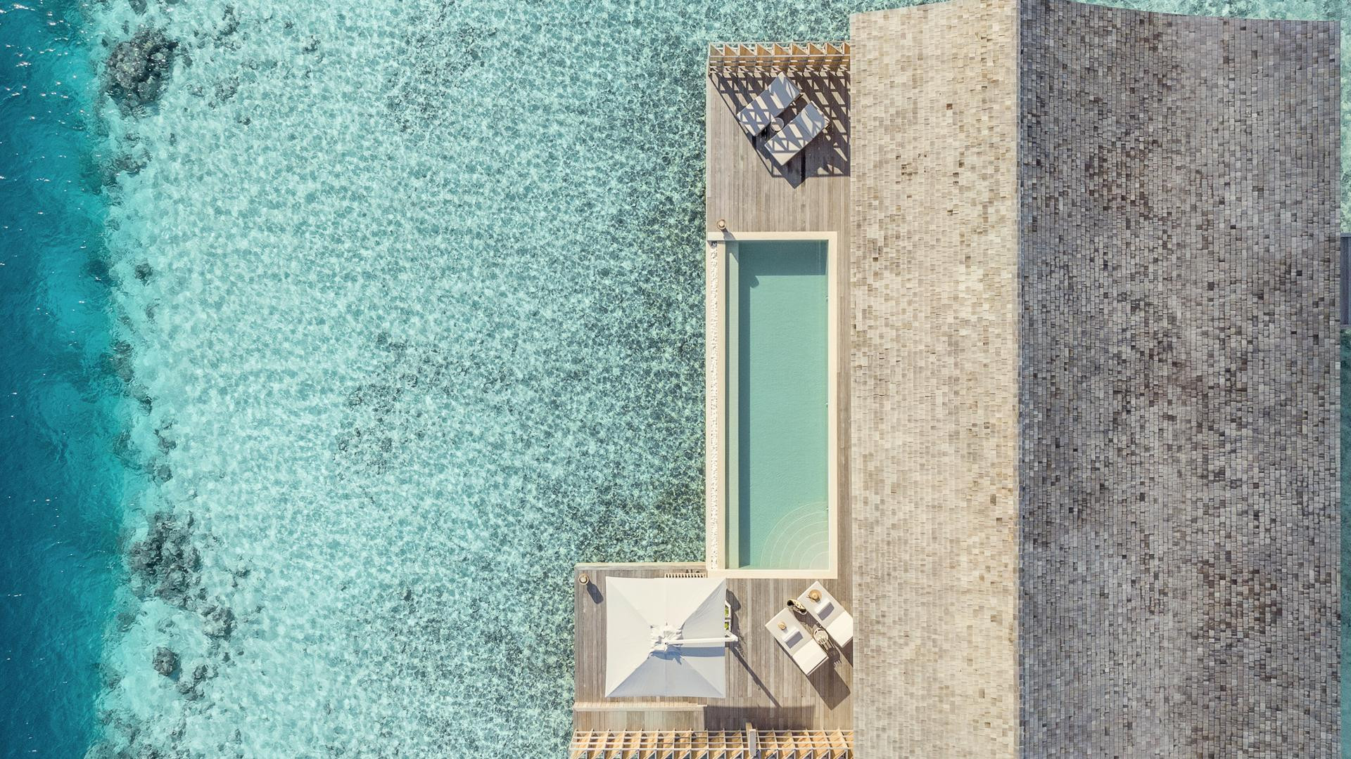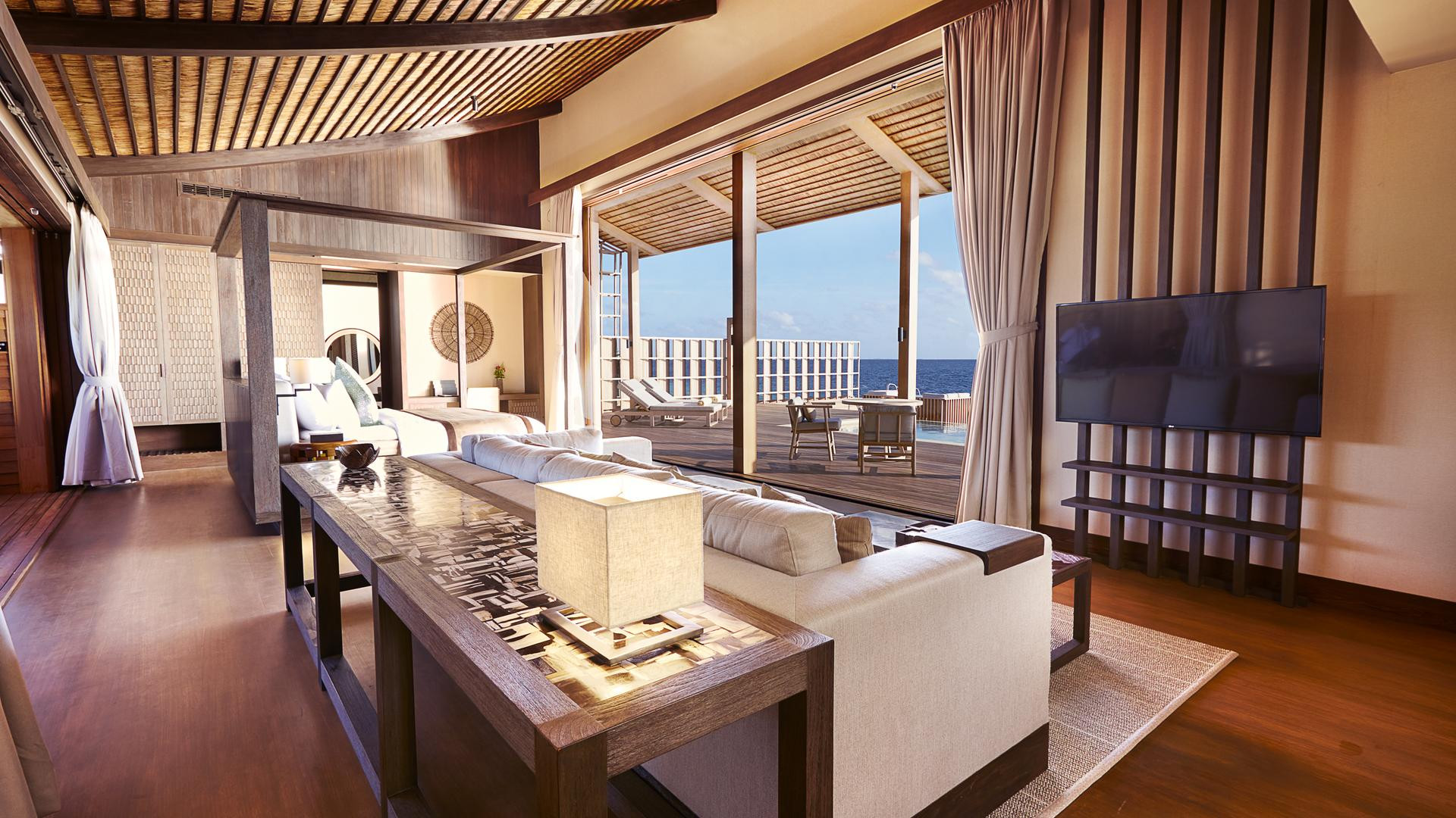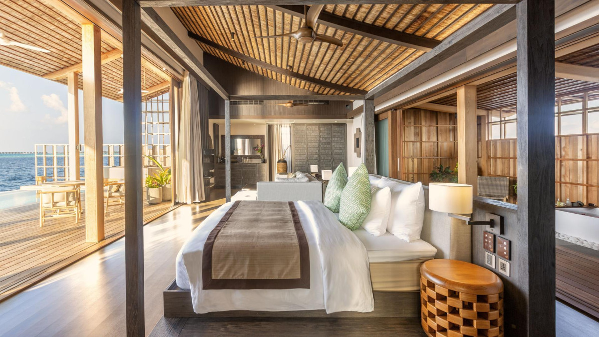 A mindössze 15 rezidencia cölöpökön áll a lagúna felett, és tiszta és lineáris stílus, meleg természetes tónusok, természetes anyagok és a legújabb technológia jellemzi őket. Az építészet a természetes légáramlás szerelmeseit szolgálja ki. A rezidenciákat gyaloghíd köti össze egymással és a kis szigettel, csak méretben és hálószobák számában különböznek egymástól, és páratlan luxust kínálnak, csodálatos kilátással a tengerre. Fürdőszoba káddal és esőzuhannyal, hajszárítóval és fürdőköpennyel, telefonnal, Bang & Olufsen audiorendszerekkel és IPTV-vel (Netflix-et is beleértve), WLAN-nal (ingyenes), minibárral, széffel, légkondicionálóval és kb. 44 nm-es végtelenített medencével tágas egy Deck és rengeteg ülőhely. A türkizkék lagúnák felett félkörívben elhelyezkedő, 15 db letisztult modern stílusú, exkluzív privát villa tervezésénél minden részletet alaposan átgondoltak, a legnagyobb kényelemet, privát életteret, ökológiai tudatosságot szem előtt tartva.