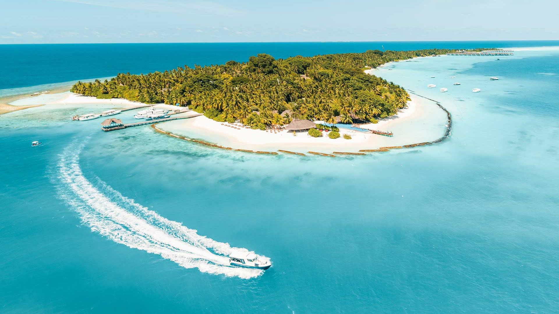 Malétól északra, 90 percnyi gyorshajó útra, felár ellenében 20 perc hidroplánnal