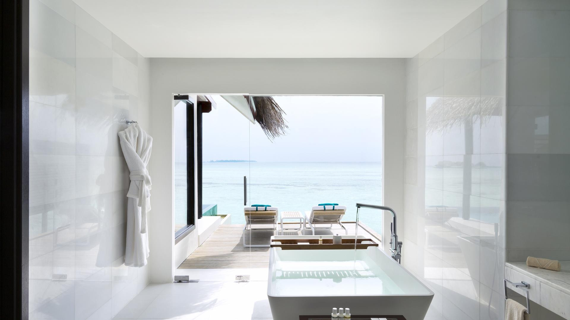 Deluxe Water Pool villa 151-200 nm, családi ház, vízi bungaló (cölöpökön a lagúna felett), tengerre néző, zuhanyzó, fürdőkád, WC, fürdőköpeny, papucs, hajszárító, légkondi, minibár térítés ellenében, széf, TV, DVD lejátszó, WiFi , vízforraló, kávéfőző, kávé/tea, terasz (bútorozott), közvetlen tengeri kijárat, saját medence, pezsgőfürdő