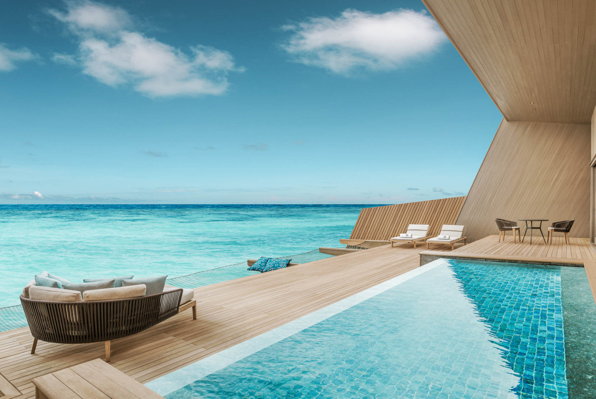 LagoonOverwater St. Regis lakosztály medencével, kb. 282 nm: külön nappalival és Cölöpökre épített hálószoba az óceán felett.