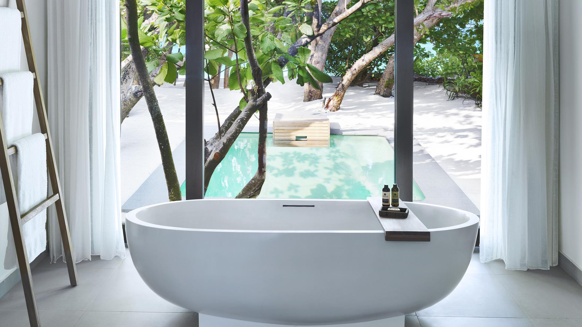 Beach Villa merülőmedence kb 114 nm: Közvetlen hozzáférés a strandhoz, további Napágy és 16 nm-es pezsgőfürdő.