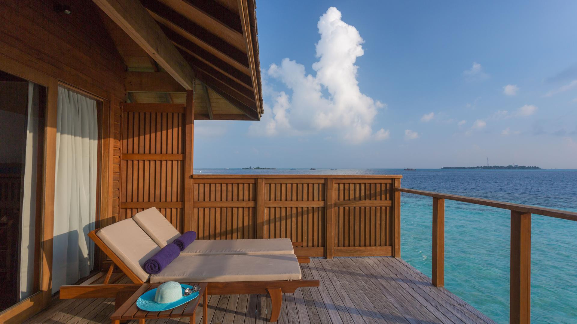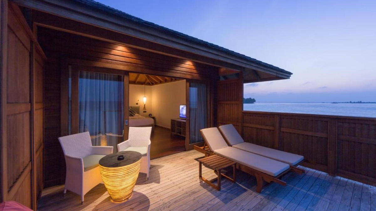 Jacuzzi Water Villa, villa, alsó korhatár a szobában: 18 év, tenger felőli, lagúna felőli, tengerre néző, kb. 85 m², összesen szobaszám ebben a szobatípusban: 1, elrendezése a következő: kombinált nappali/hálószoba , klíma: ingyenes , egyénileg szabályozható, hideg, széf: ingyenes, mennyezeti ventilátor, kanapé, íróasztal, kávé/teafőző, minibár: térítés ellenében, üdítők: térítés ellenében, víz: térítés ellenében, alkoholos italok: térítés ellenében, harapnivalók: térítés ellenében, minibár feltöltése: naponta, telefon, Internet: WLAN/WiFi: ingyenes, televízió: a hálószobában, kábeltévé, DVD lejátszó, CD lejátszó, iPod dokkoló, szoba szolgáltatás: térítés ellenében, takarítás: ingyenes, zuhanyzó, pezsgőfürdő, wc, fürdőköpeny: térítés ellenében, hajszárító, terasz: nyugágyakkal, ülőgarnitúrával