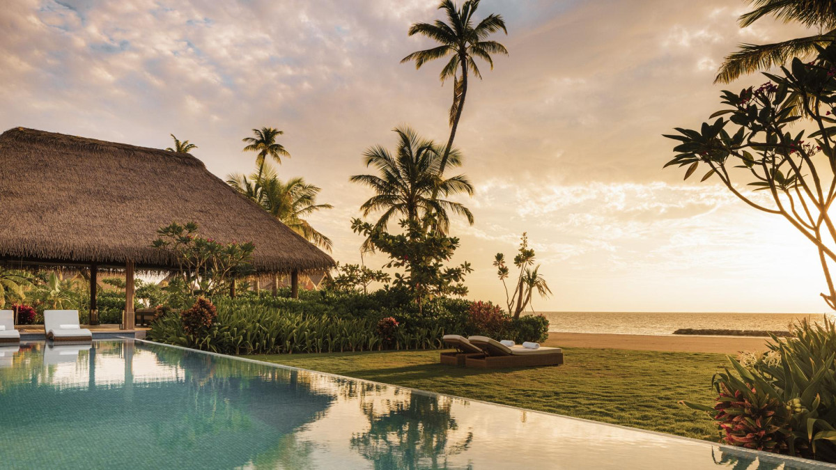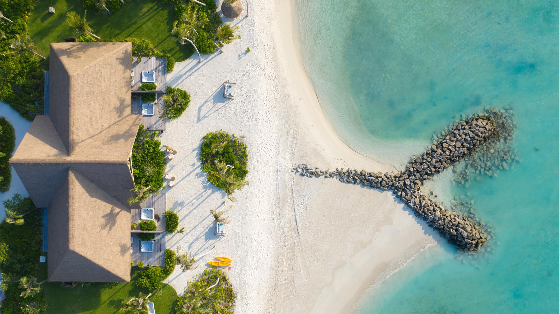 Reef Villa medencével kb. 279-286 nm: Földet és vizet köt össze, zölddel Előkert és terasz függőággyal a lagúna felett. 2 hálószobával is (kb. 600 nm) foglalható.